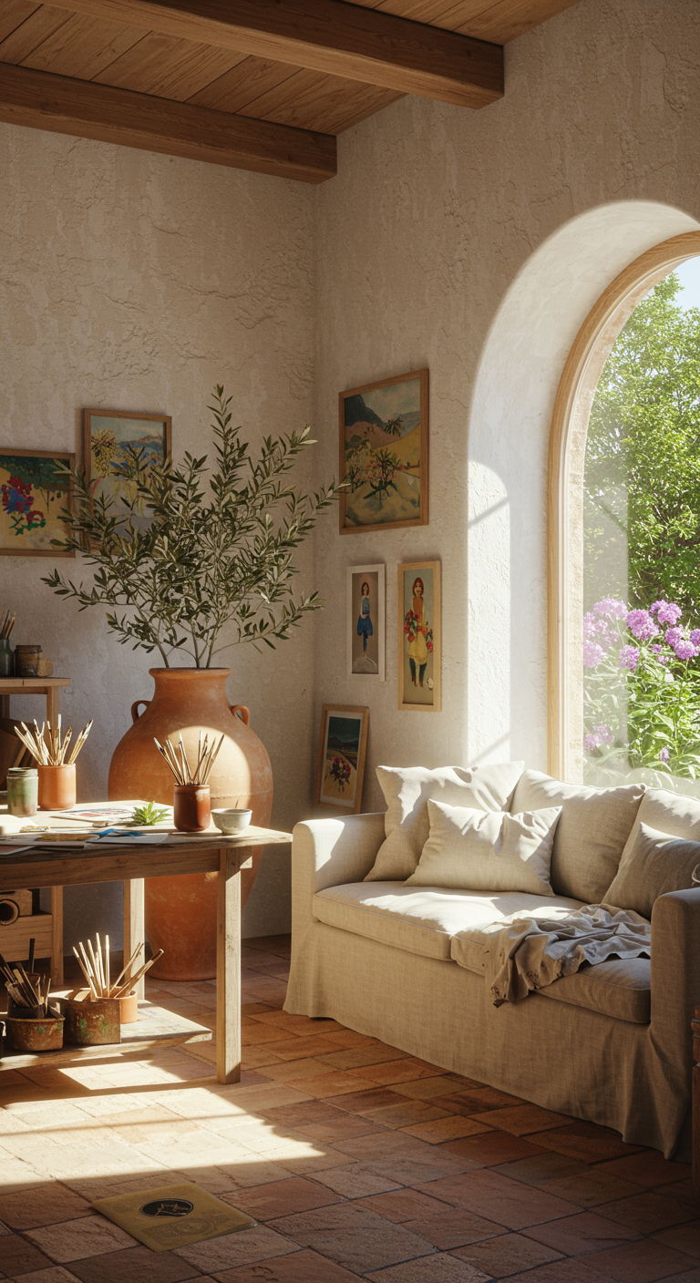 To make it happen, you could use colors like ocean blue, sandy beige, and terracotta orange. Get some cool pottery, maybe some olive branches in a vase, and a comfy couch with lots of pillows. You could even add a little fountain for a super relaxing sound! Think about adding your art to the walls to give it that personal touch! So, if you want a hobby room that's both creative and calming, the Mediterranean villa style might be perfect for you.