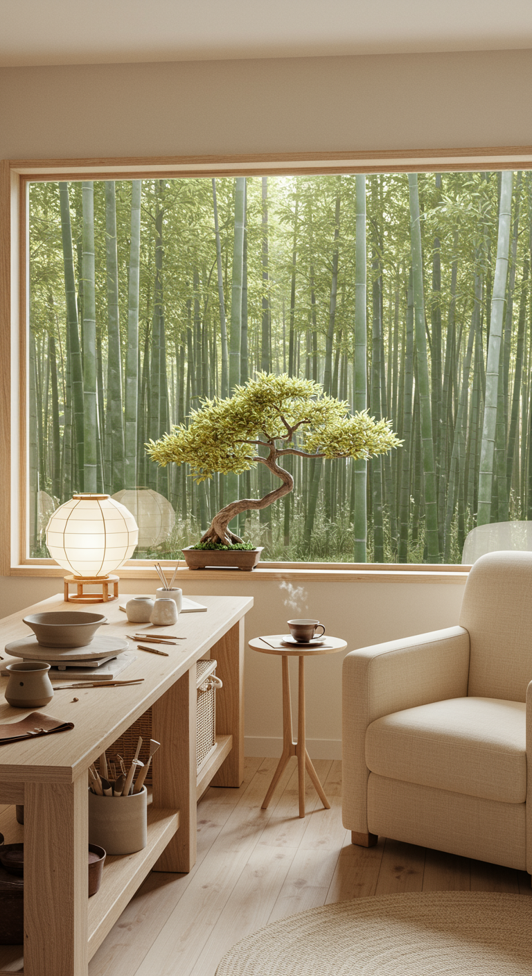 Imagine a spot filled with soft blankets, maybe some fairy lights, and natural textures like wood and plants. It's all about creating a calm and inspiring atmosphere where you can relax and focus on your hobbies. This style is perfect for anyone who loves crafts like knitting, drawing, or even writing!